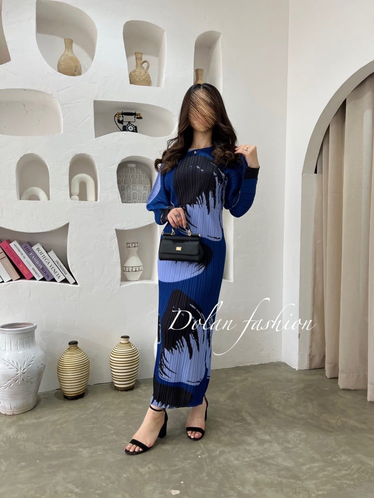 فستان طويل بقصة خصر مرتفع وصدر متصل بأكمام مبتكرة، يتميز بتشجير عصري يجمع بين الأناقة والحداثة. إطلالة راقية تلائم المناسبات الرسمية وتبرز أنوثتك بأسلوب مميز.