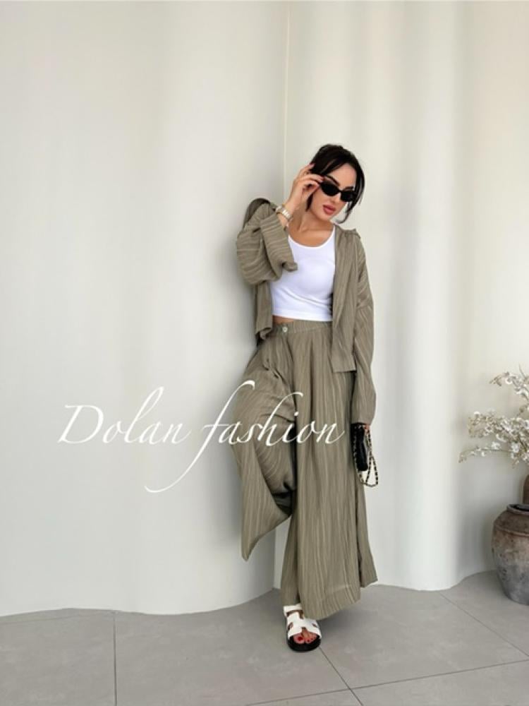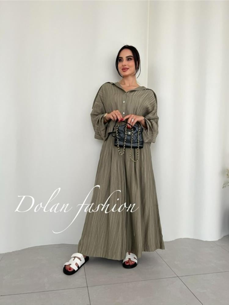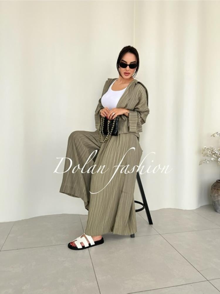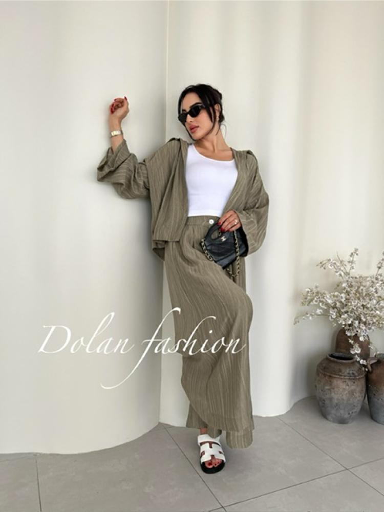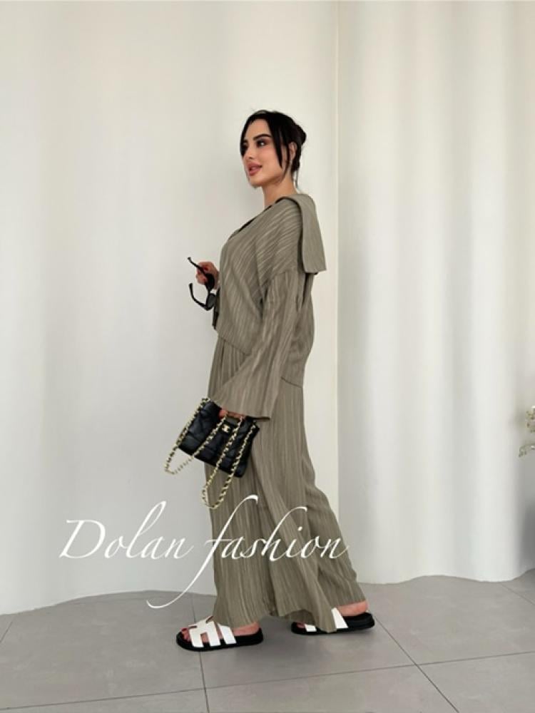 طقم صيفي مريح مكون من قميص وبنطلون واسع بقصة أوفر سايز، مصنوع من قطن خفيف بملمس مماثل اللينن. مثالي للسفر والطلعات اليومية، تصميم عملي بستايل كاجوال أنيق